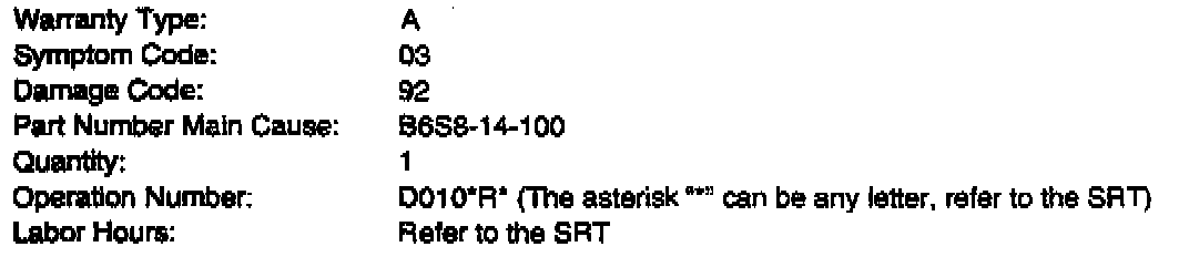 1994 - 96 626/MX-6 with a 4 cyl. engine and a VIN 1YVGE**C*T5580486 and lower.