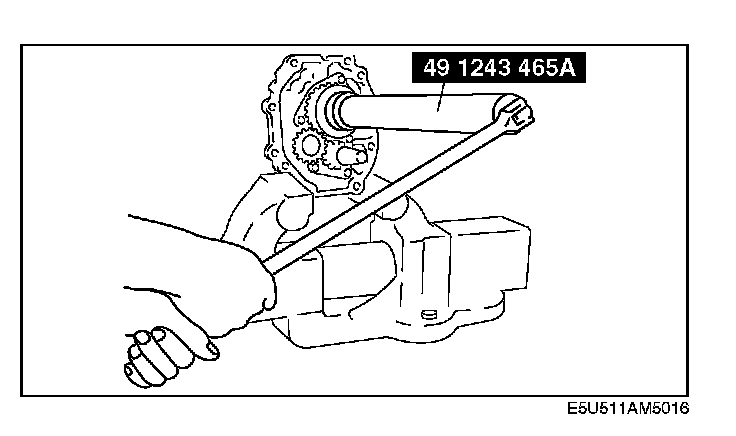 Locknut (Mainshaft) Disassembly Note1. Shift the clutch hub sleeves into 1st and reverse gears to lock the rotation of the mainshaft.