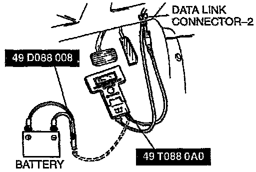 1. In the passenger compartment, connect the SST to the data link connector-2 as shown in the figure.