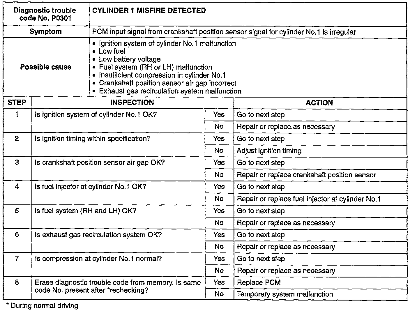 DTC P0301:
