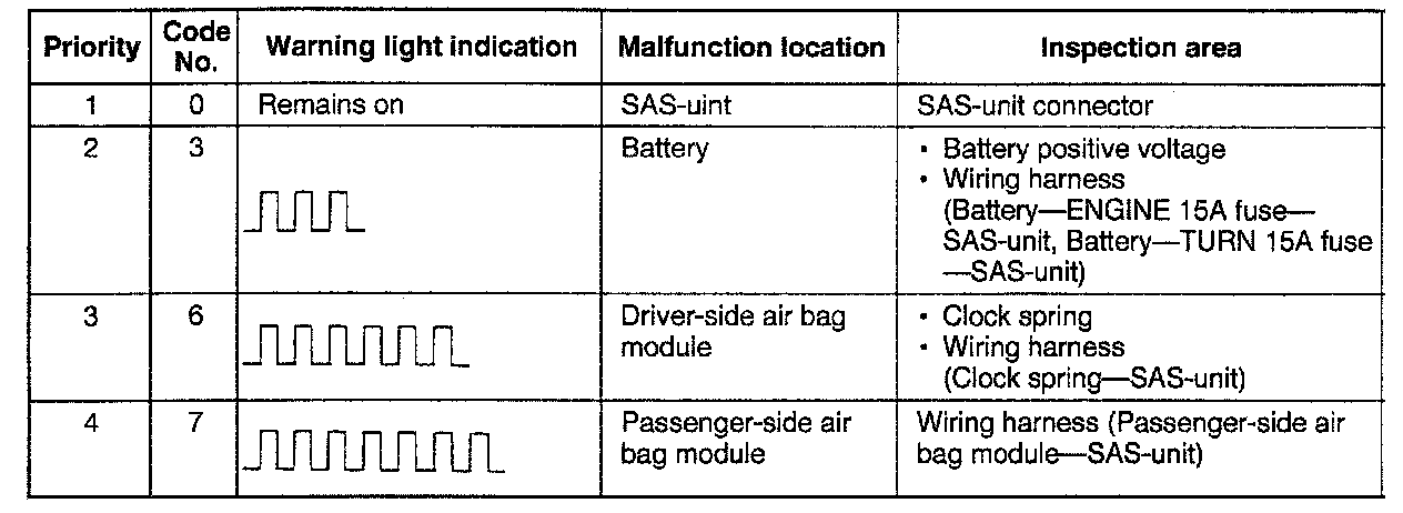 If there are two or more problems in the air bag system, the warning light indicates the problem with the highest priority.