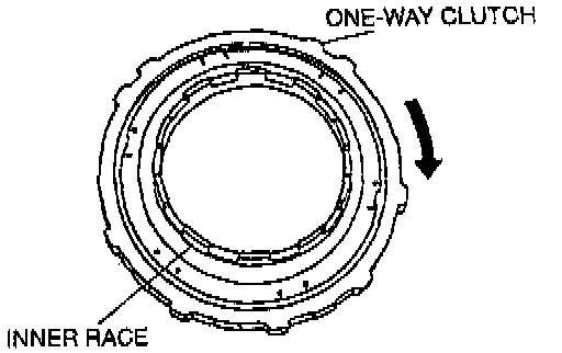 2. Install the inner race into the one-way clutch 2, and verify that the one-way clutch 2 turns smoothly and only clockwise. If the one-way clutch 2 turns or locks in both directions, replace the one-way clutch 2. If the one-way clutch 2 turns only counterclockwise, it is installed upside down.