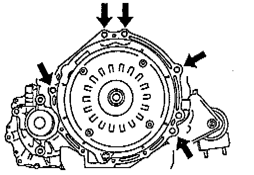 3. Install the torque converter nuts and tighten to 38 - 60 Nm (28 - 45 ft. lbs.).