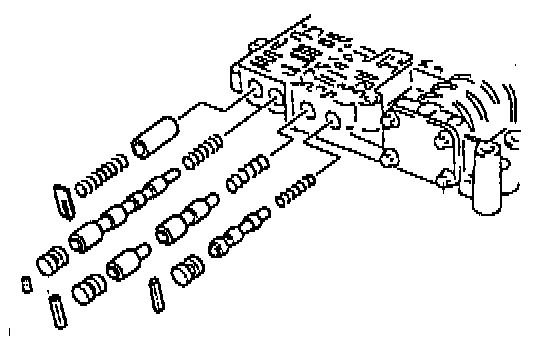 12. Install the cut back spring, cut back valve B, cut back valve A, stop plug, and stop pin.