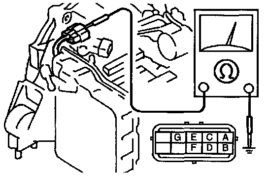 4. Measure the resistance between terminals A through G and a ground.