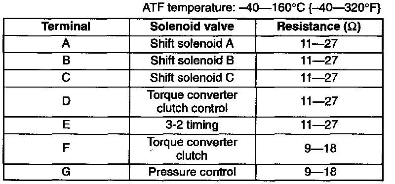Solenoid Resistance Values: