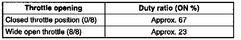 7. Depress the accelerator pedal slowly and verify that the duty ratio charges as shown in the graph.