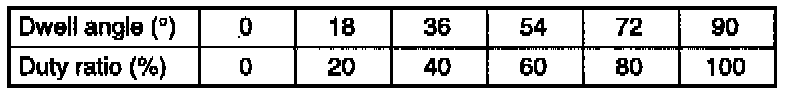 NOTE: The relationship between the dwell angle (0) and duty ratio (%) is as in image.