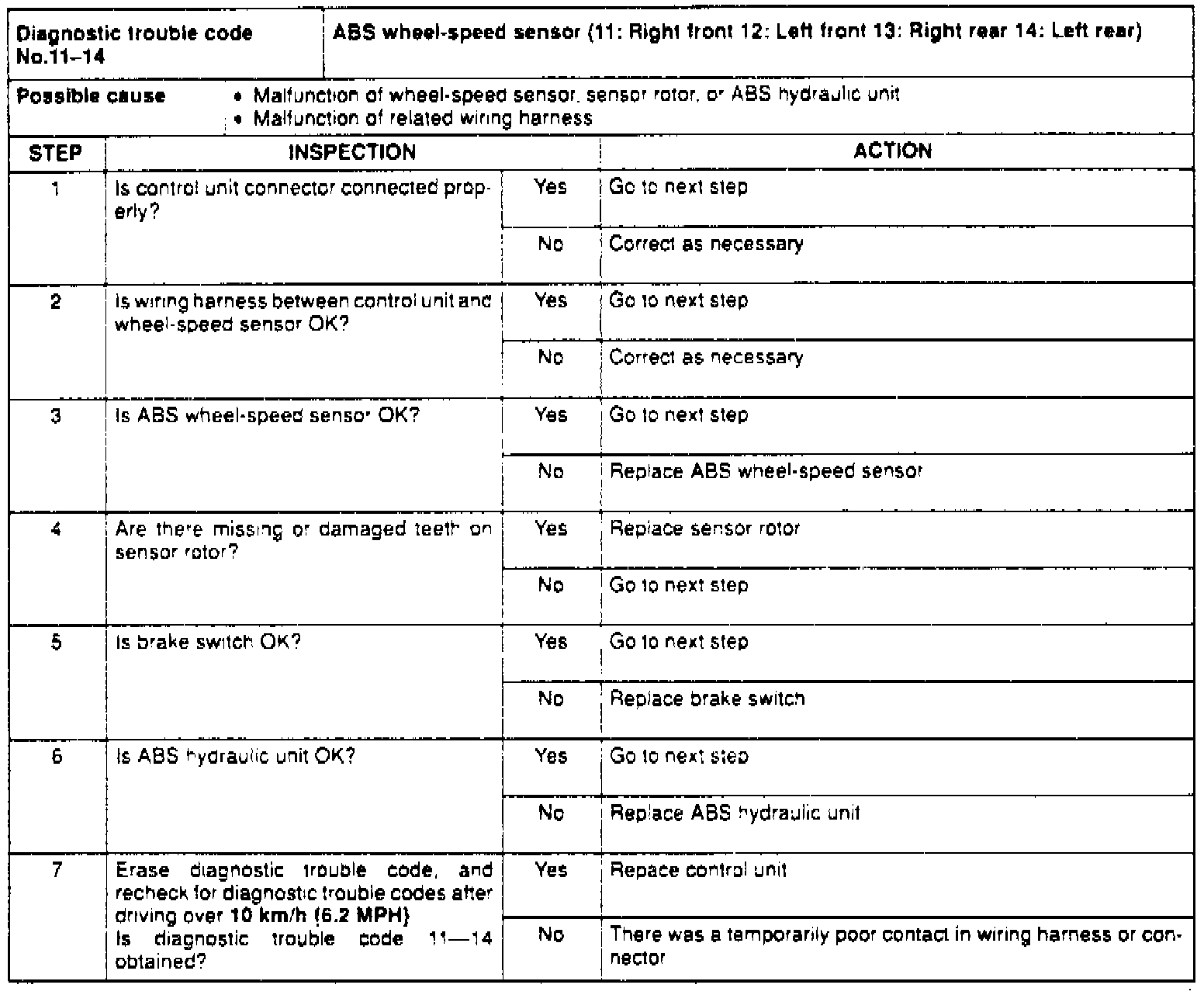 Fig. 30 Codes 11,12,13 & 14: ABS Wheel Speed Sensor:
