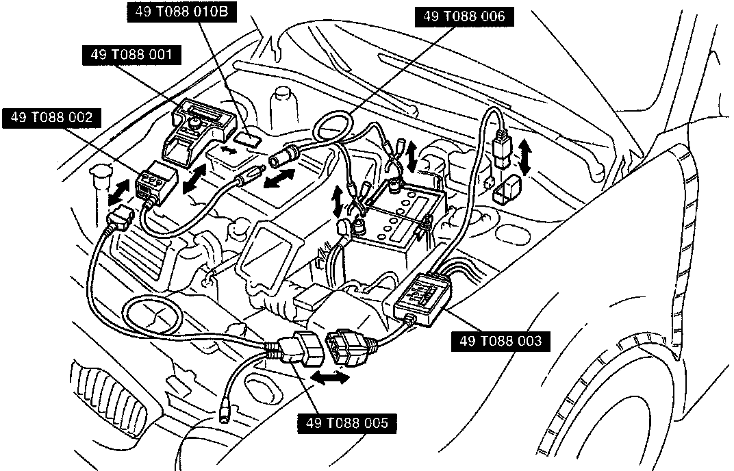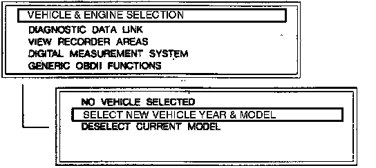 3. Select "VEHICLE & ENGINE SELECTION" on the SST (Control Unit) display, and then select the vehicle model, engine type, and model year.