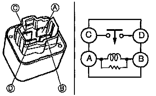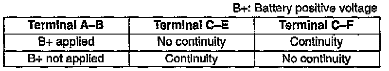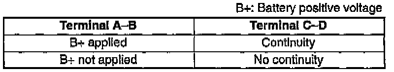 2. Apply battery positive voltage and check continuity between terminals of the relay by using an ohmmeter.