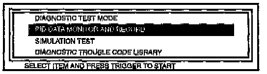 3. Select the PID/DATA MONITOR AND RECORD function of the NGS.
