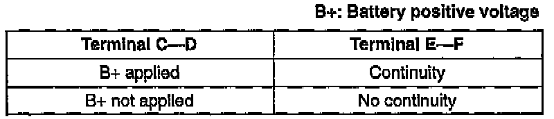 2. Apply battery positive voltage and check continuity between terminals of the relay by using an ohmmeter.