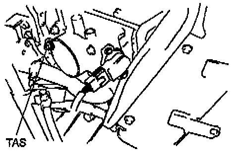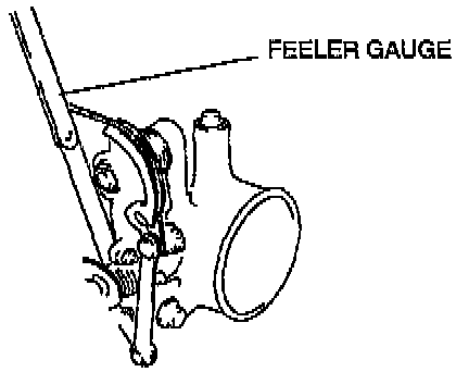4. Insert a feeler gauge between the throttle adjusting screw (TAS) and the throttle lever. Adjust the continuity between the closed throttle position switch terminals C and D by using an ohmmeter.