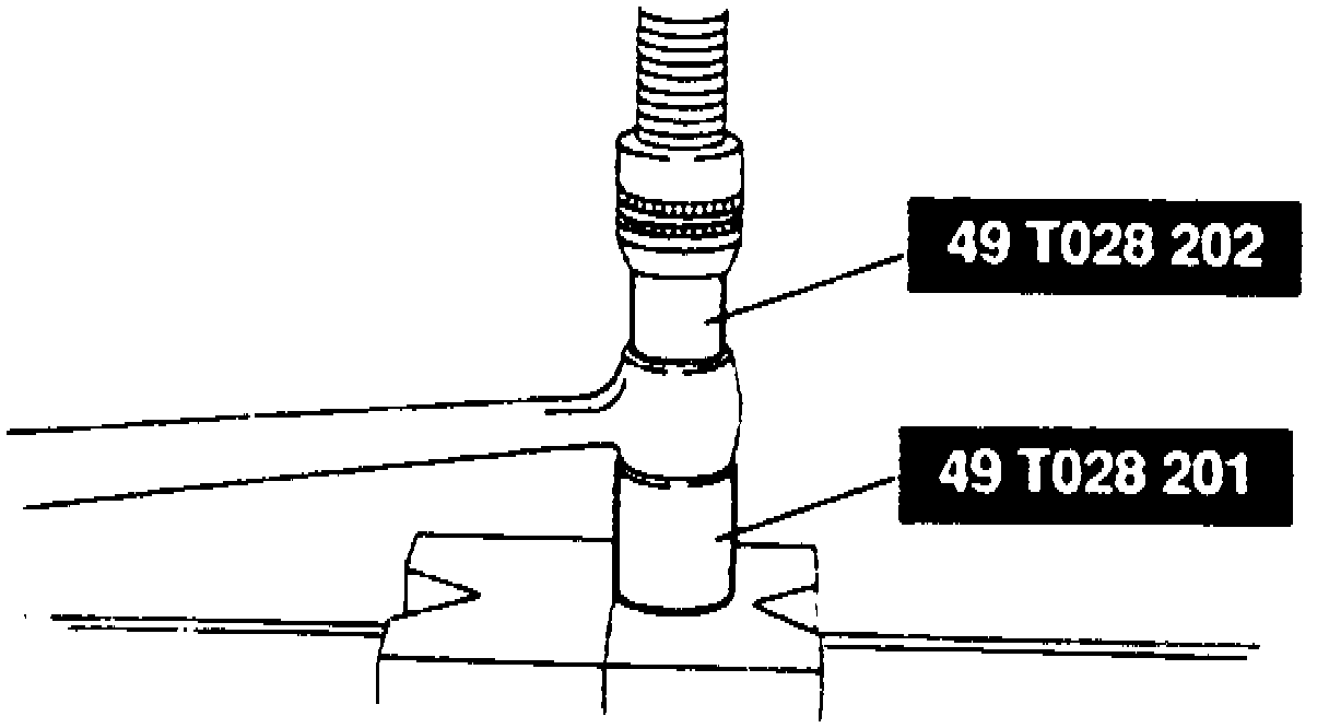 6. Cut away projecting rubber portion of damper bushing, then remove bushing using rubber bushing replacer set tool No. 49 T028 2A0, or equivalent.