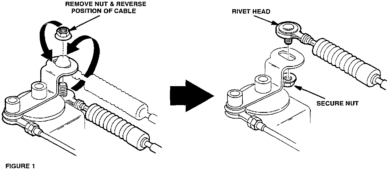 4. Reverse the position of the control cable end and secure to shift lever as shown below in FIGURE 1.
