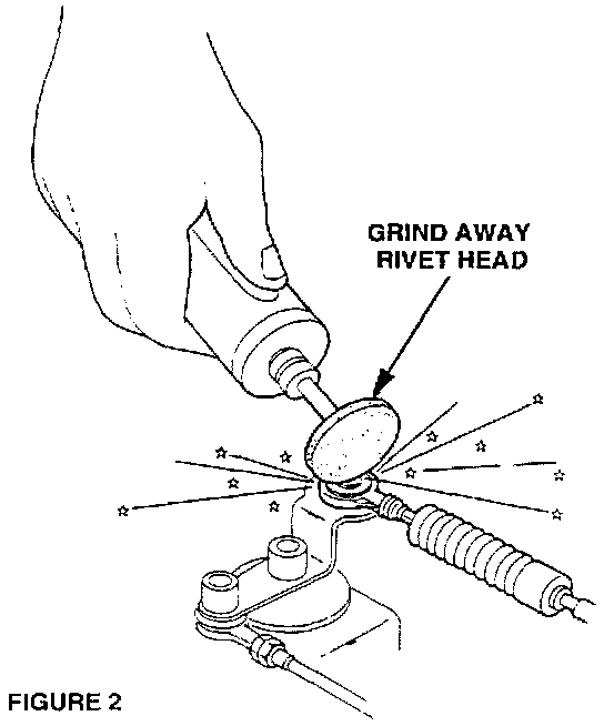 6. Grind away the rivet head with a die grinder or other tool. See to FIGURE 2.