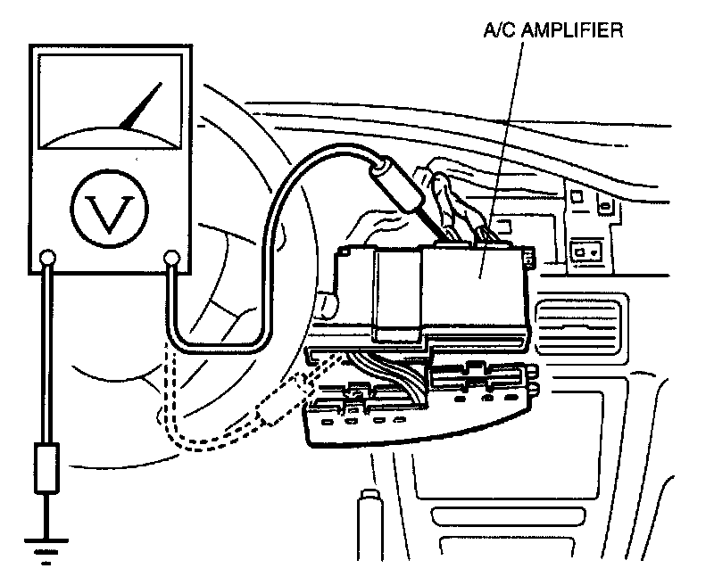 4. Measure the voltage at the terminals of the A/C amplifier connector and refer to the terminal voltage chart.