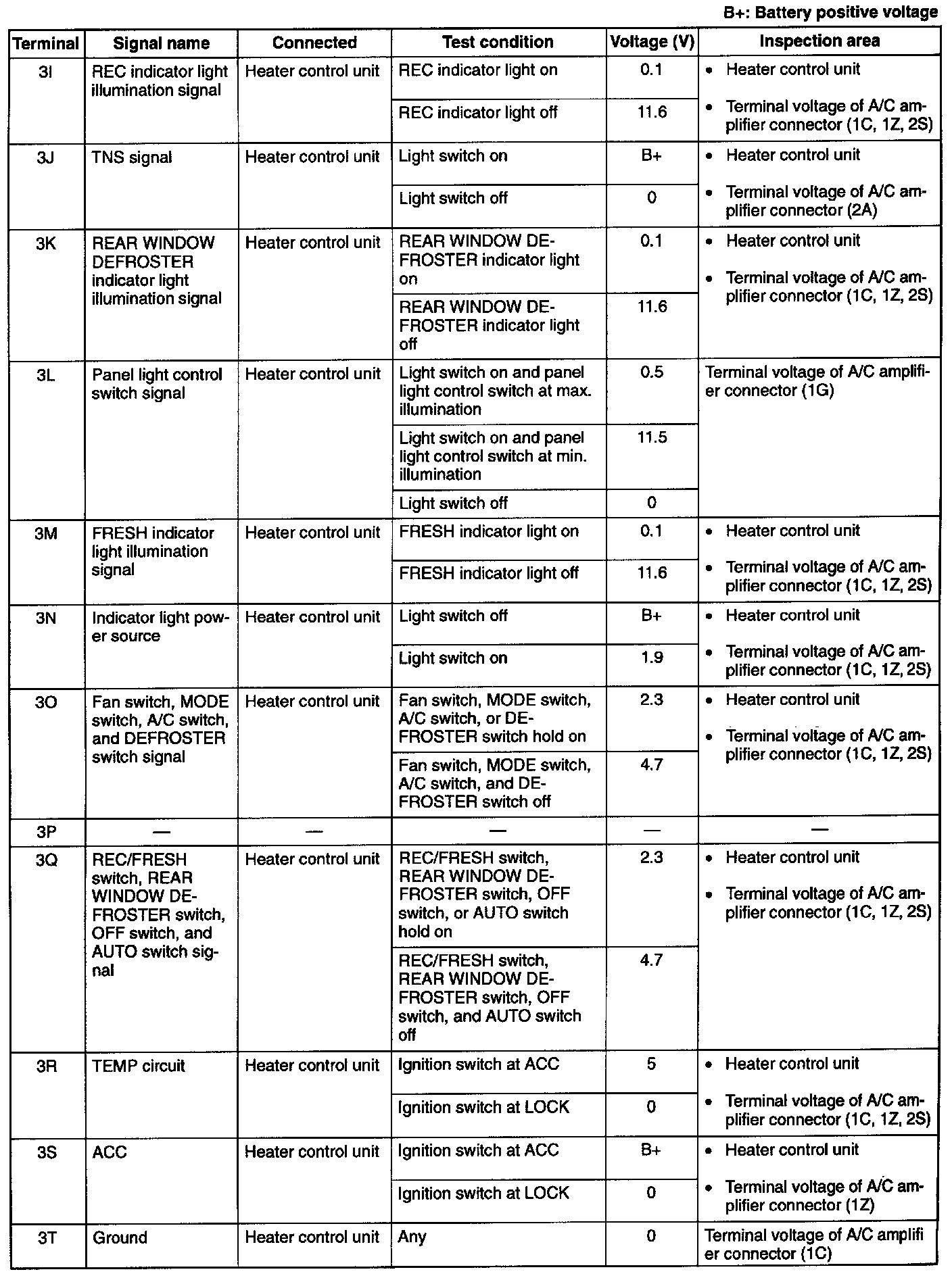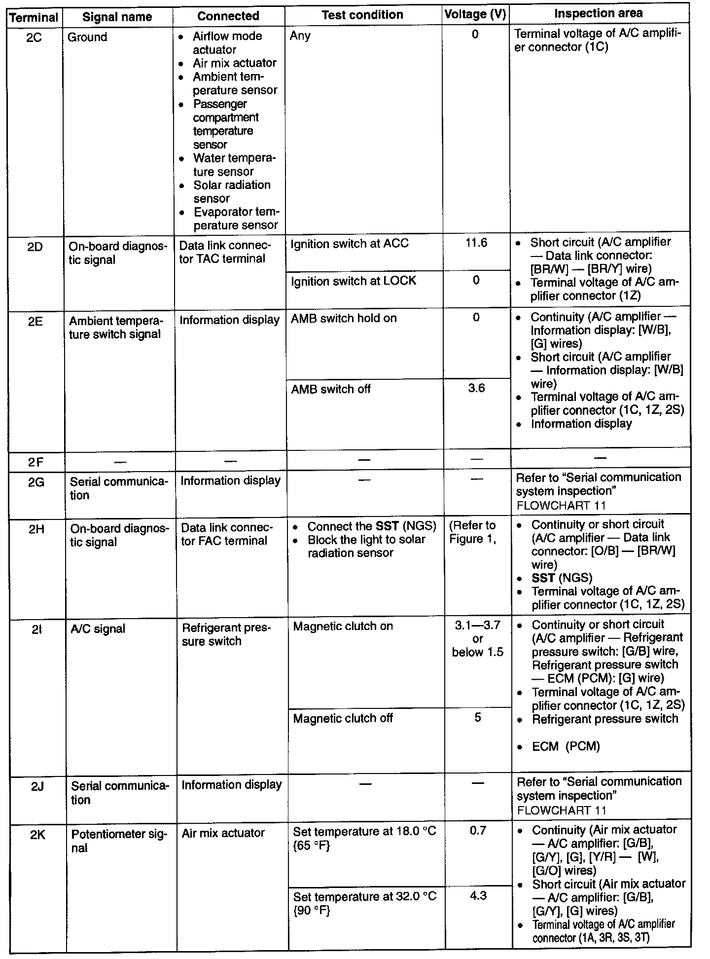 6. If the appropriate area is correct, replace the A/C amplifier.