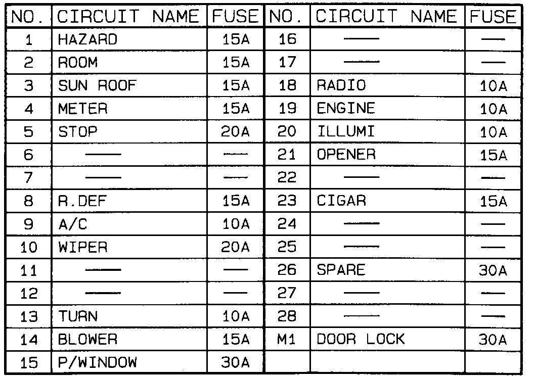 Fuse Location/Application Chart: