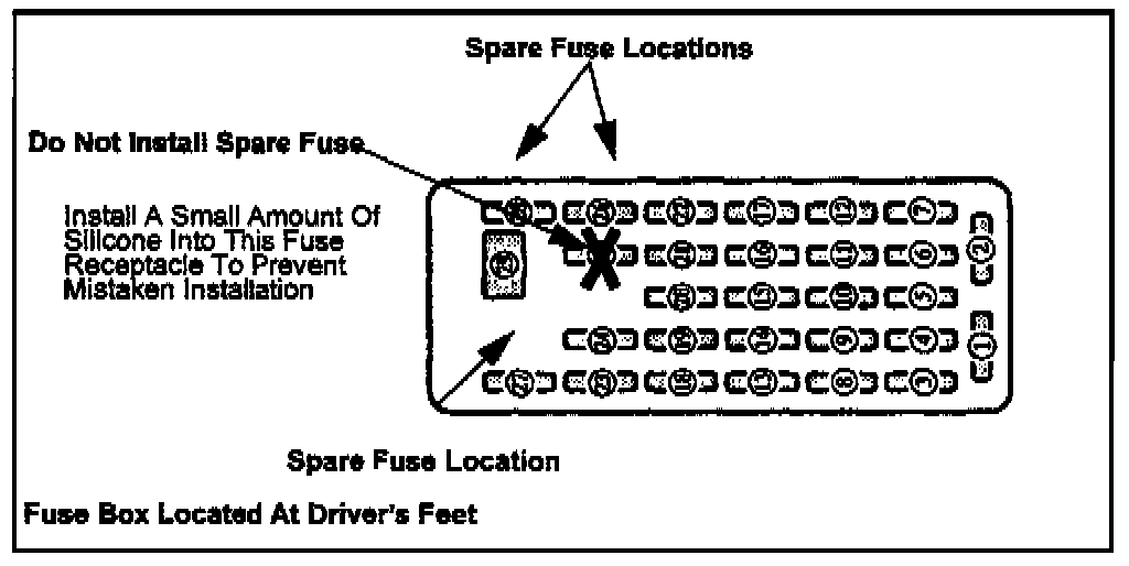 Correct any customer complaints resulting from incorrect fuse installation and inform the customer to refer to "Fuses" section of the owners manual for correct spare fuse locations.