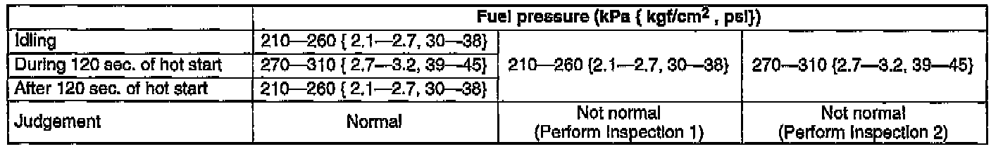 3. If the fuel pressure is not within the specification, carry out either Inspection 1 or Inspection 2 as required.