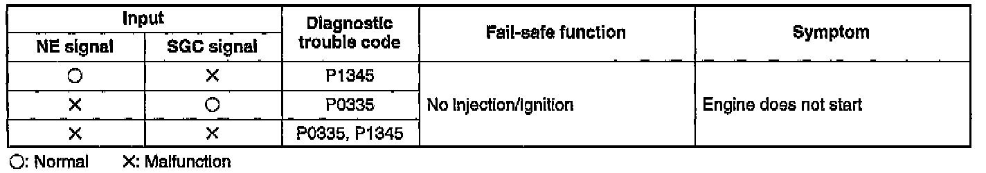 - If the NE signal circuit has an open or short, diagnostic trouble code No.P0335 is output.