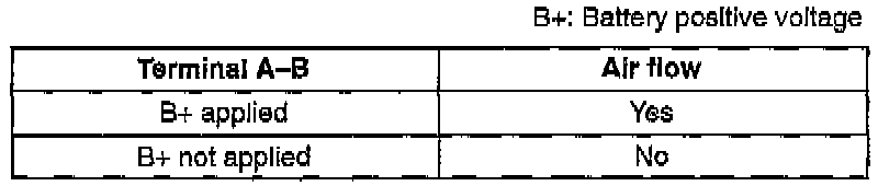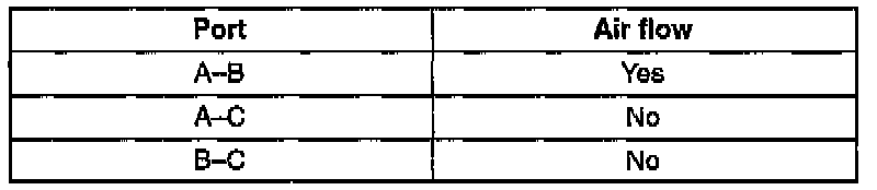 2. Apply battery positive voltage to terminal A and ground terminal B of the EGR solenoid valve (vacuum). Verify that air flows as shown below.