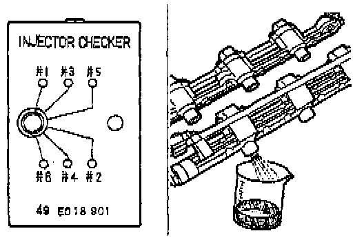 6. Press and hold the switch for 15 sec. and measure the injection volume of each fuel injector by using a graduated container.