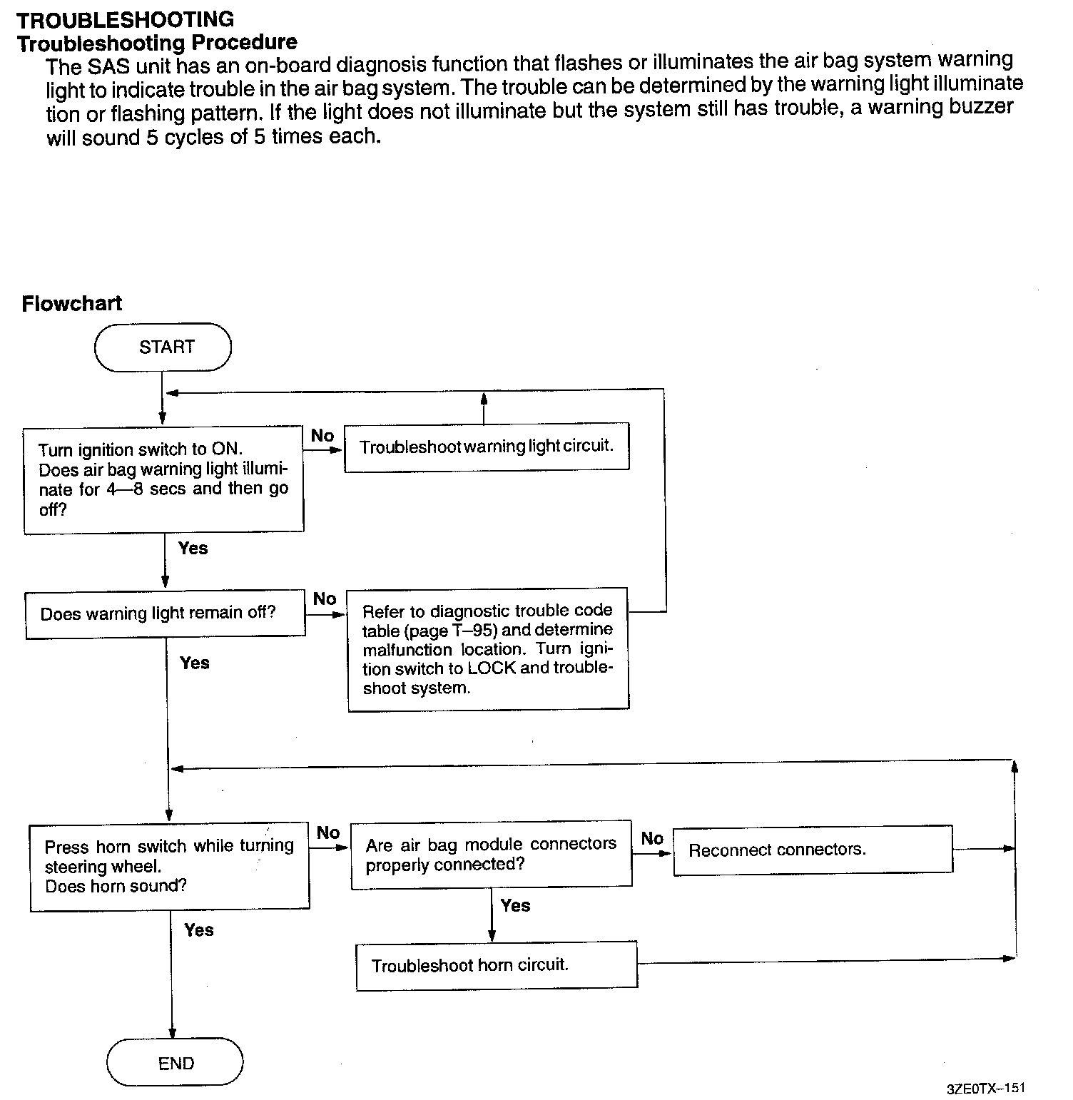 5. Follow the troubleshooting flowchart to verify that the air bag system is operating normally.