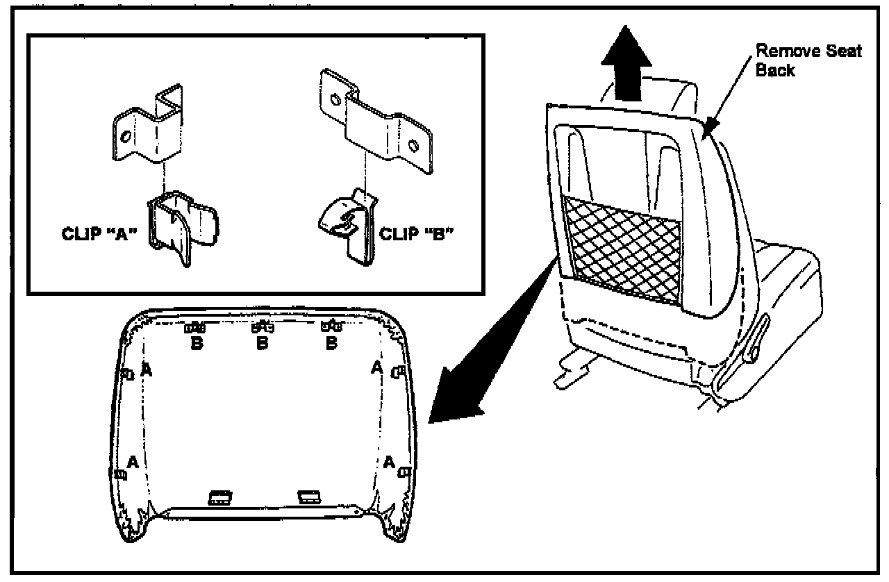 The front seat back cover installation clips may break during seat back cover removal. Do Not reuse these clips.