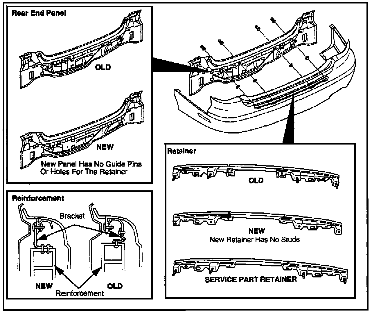 New Rear Panel, Service Part Retainer, New Reinforcement