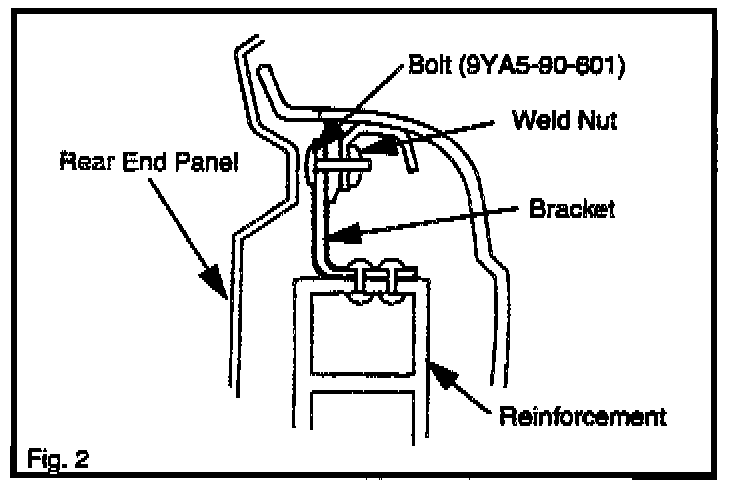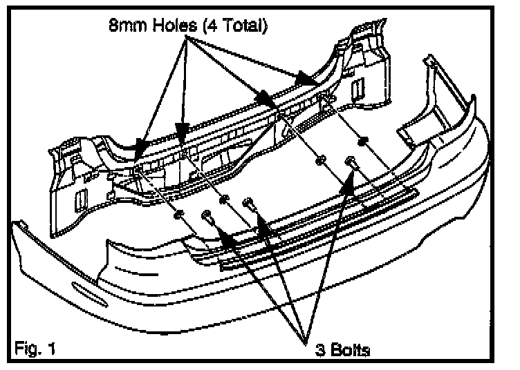 3. Loosely install the rear bumper. Use a piece of packing (see Parts Information) for spacing the bracket from the rear end panel Refer to Fig. 3.