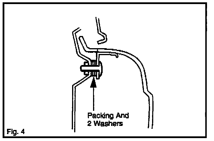 ^ Install packing and two (2) washers (see Parts Information) on each of the retaining bracket studs. Refer to Fig. 4.