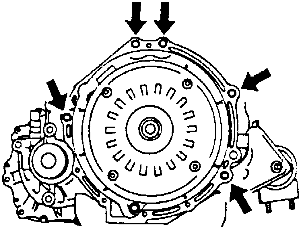21. Remove seal rubber from torque converter end plate as necessary, then hold driveplate and remove torque converter nuts.