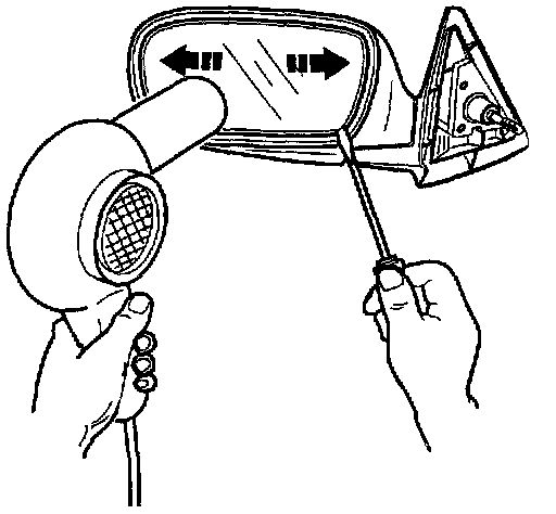 4. While applying a slight amount of pressure with the tool, heat the mirror glass until it becomes loose.