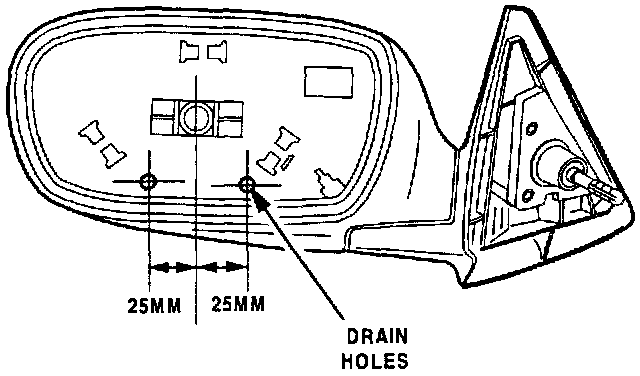 7. Drill two 5mm holes in the mirror holder in the locations shown.