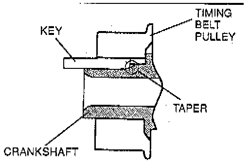 Insert the key into the timing belt pulley, facing the tapered side downward. Push the key until it stops.