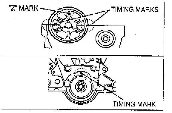 - Face "Z" mark on the camshaft pulley straight up and align the timing marks with the cylinder head upper surface.