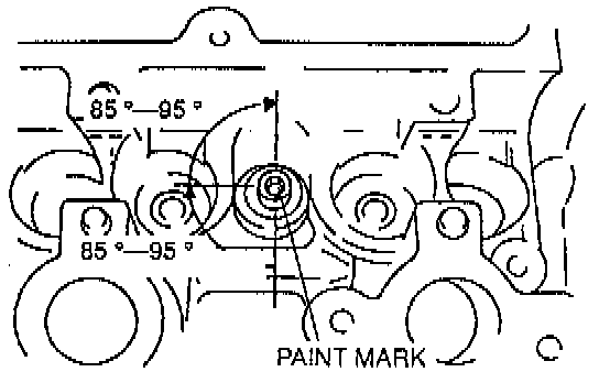 4. Using the marks as a reference, tighten the bolts by turning each 85° - 95° in the sequence shown.