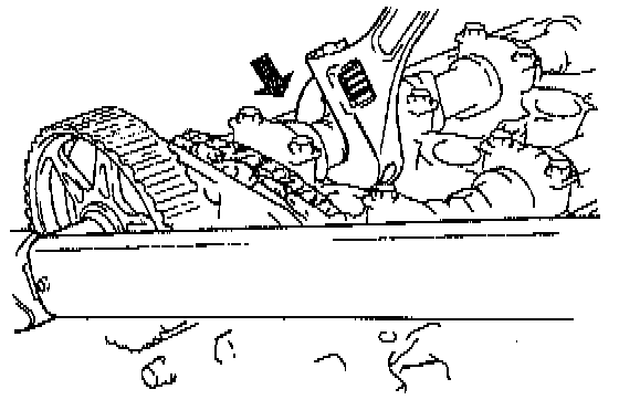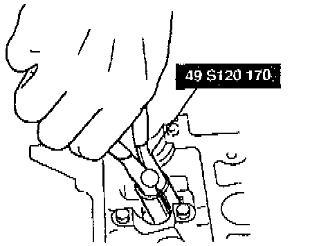 5. Check the belt deflection at the point indicated by applying moderate pressure 98 Nm (22 lbs.).