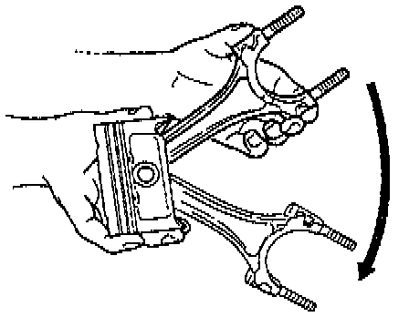 1. Before disassembling the piston and connecting rod, check the oscillation torque as shown. If the large end does not drop by its own weight, replace the piston or the piston pin.
