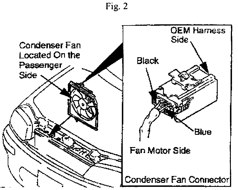 14. Connect the condenser fan vehicle harness to the condenser fan connector.