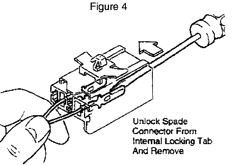 8. Slide the "BLACK" and "BLUE" wires out of the yellow terminal retainer.