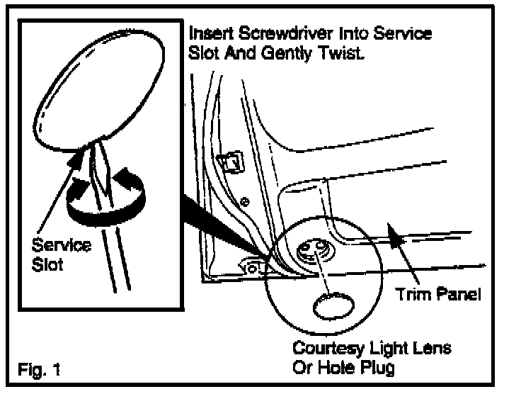 1. Insert the fiat tip of a screwdriver into the service slot at the bottom of the lens (or hole cover). Refer to Fig. 1.