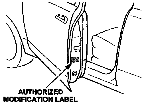 Complete an "Authorized Modification Label" with the recall number # 91007 written on the sticker and affix it to driver's side door under the door latch. Refer back to the illustration under "A. VEHICLE INSPECTION PROCEDURE".