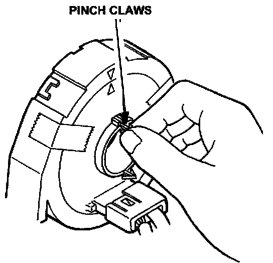 6. Remove the three (3) screws as shown above and pinch the two (2) claws together to remove the clock spring. Refer to the illustration shown.