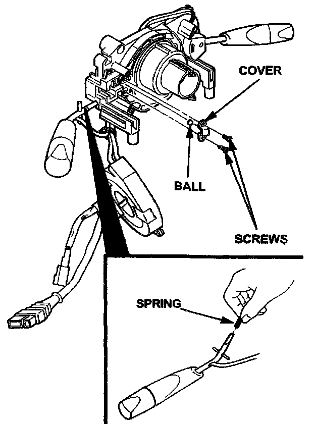^ Be sure to hold the cover down with your fingers while removing the headlight switch screws. A ball bearing and spring are located under the cover. These items must be reused.