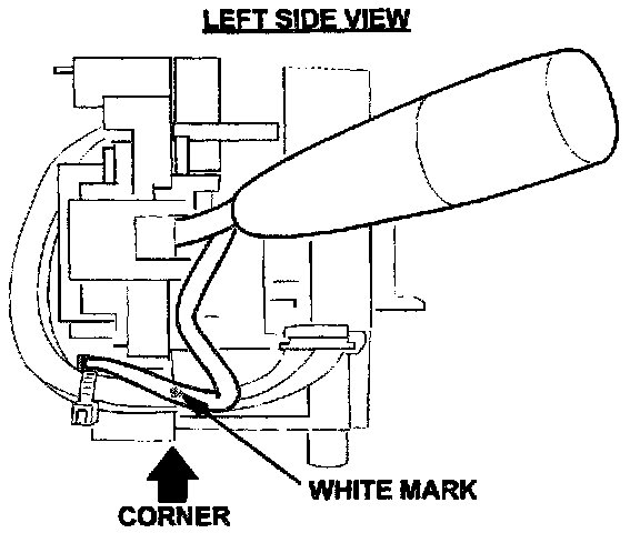 15. At the left side of the combination switch assembly, align the white mark on headlight switch harness with the corner of combination switch as shown.