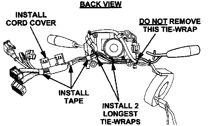 ^ When installing the column covers, be sure the wire harness is not pinched between the top and bottom halves.
